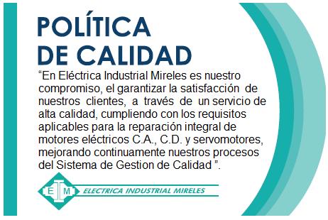 “Somos una empresa generadora de Soluciones Integrales en reparación de motores e instalaciones eléctricas, mediante procesos de calidad y talento humano, con la finalidad de lograr la satisfacción total de nuestros clientes y las de nuestros colaboradores”.